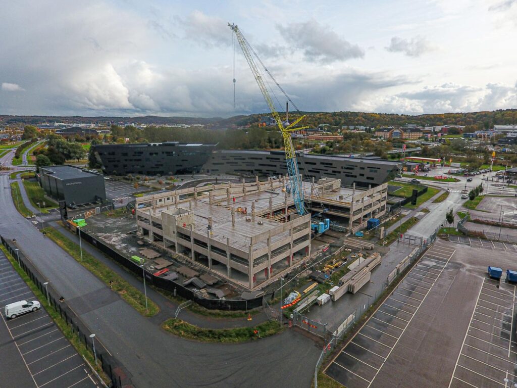 Det fem våningar höga parkeringshuset, med totalt 450 parkeringsplatser, är en del av den stora expansionen kring Hedins huvudkontor och planeras stå färdigt till mitten av 2025.